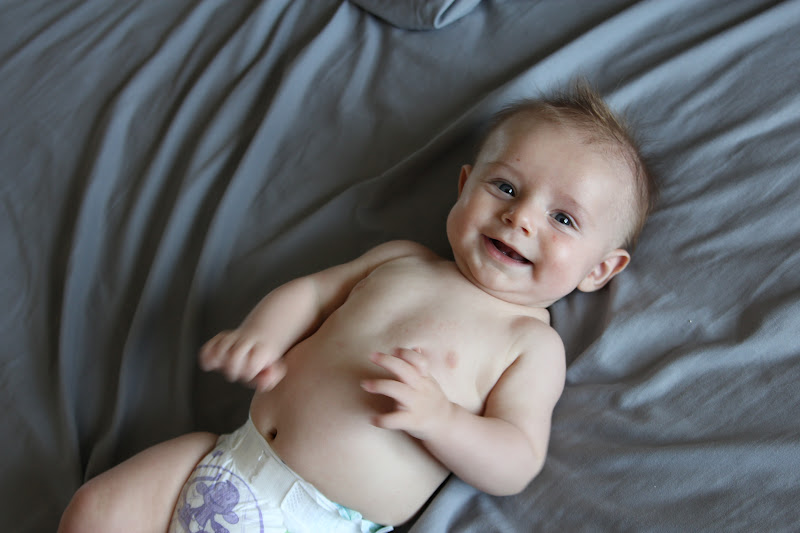 Nathan has recently started grabbing his toes, and he's been reaching up and grabbing hanging toys for a few weeks now. I love watching the new things that babies learn and experience every day, but a part of me gets sentimental and sad watching them grow up so fast.