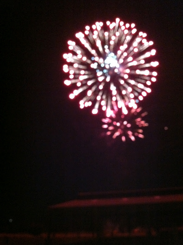 We were able to make it out of church in time to go to fireworks in our local town. Let me tell you, it was one of the best firework shows I've seen! Joey kept his ears plugged, but wouldn't take his eyes off of them.